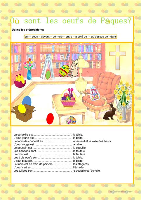 Jeżeli francuskie odpowiedniki już znajdują się w Twojej głowie, możemy przejść dalej. Przed nami ćwiczonko, w którym trzeba odpowiednio wpisać przyimki. By to zrobić, musimy wykazać się spostrzegawczością. To jak, zaczynamy? 🙂